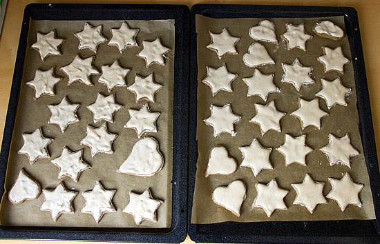 Je nach gewünschtem Bräunungsgrad werden die Zimtsterne nun 5-10 Minuten im vorgeheizten Backofen bei ca. 200°C gebacken. Anschließend abkühlen lassen und nicht alle an einem Tag aufessen 😀